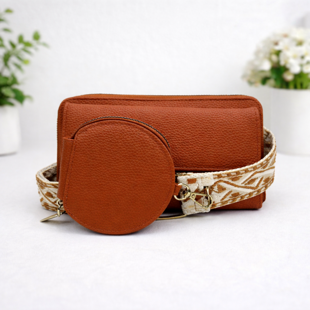 Meet the Alice Phone Wallet—the perfect grab-and-go crossbody for busy days and hands-free moments. Designed to keep your essentials close without the bulk, this compact wallet features a sleek pebbled finish, a removable patterned strap, and a matching round coin pouch for extra storage.